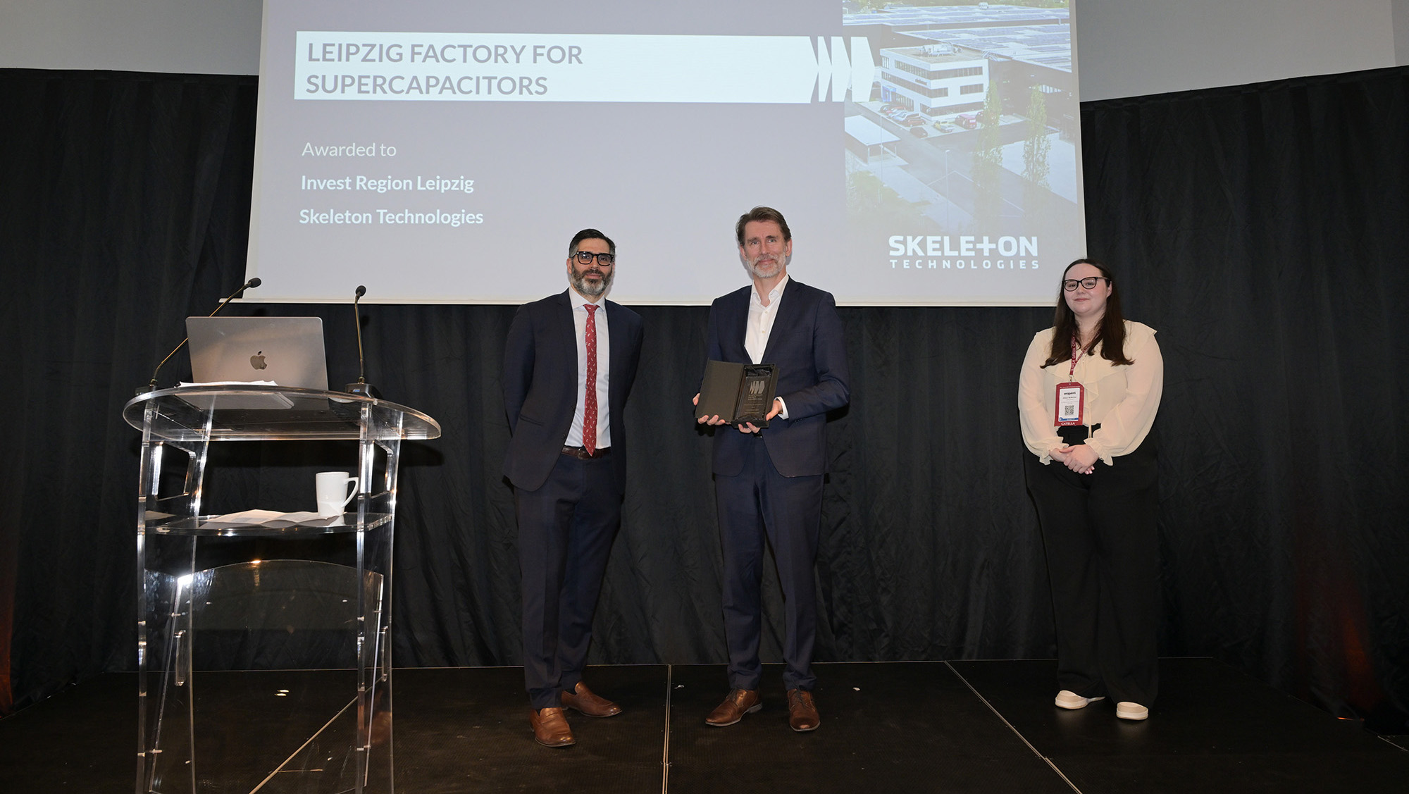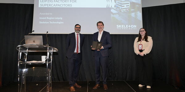 Major success for the Leipzig economic region: At the Investment Impact Awards, presented by the British magazine fDi Intelligence to investment projects with significant economic and societal transformation potential, the Skeleton Technologies project in Markranstädt secured third place in the category “Top 10 Most Operational Mid-Sized Projects in Europe.” Invest Region Leipzig GmbH supported the investment with comprehensive services throughout the settlement process. More than 100 submissions from 27 countries were entered for the Investment Impact Awards. The project in Markranstädt is the only investment project located in Germany to receive an award. The awards ceremony took place on March 10 in Cannes during MIPIM, one of the world’s most important real estate trade fairs.